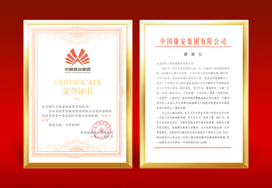 中國雄安集團(tuán)有限公司優(yōu)秀造價咨詢機(jī)構(gòu)獎、特殊貢獻(xiàn)獎